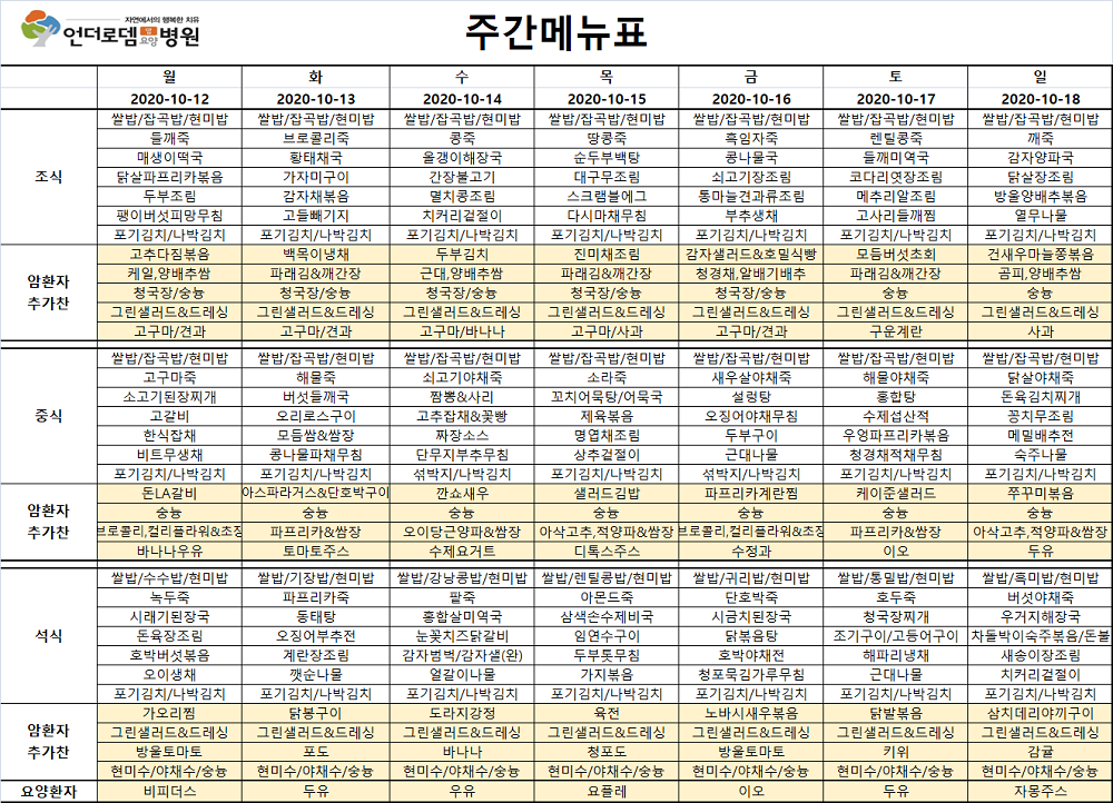 10월12일~10월18일 식단표